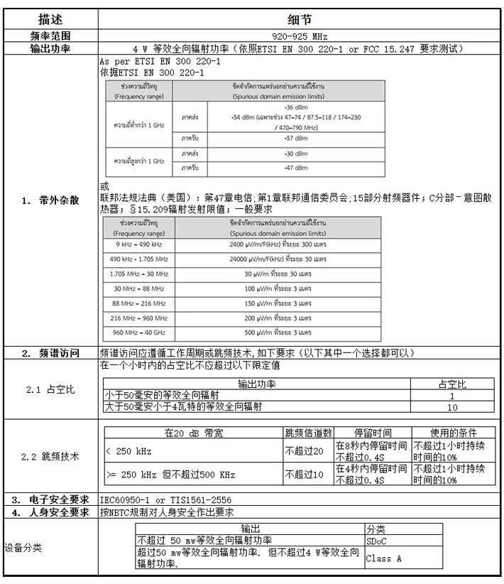 -NBTC TS 1033-2560 (Non-RFID 920~925 MHz的新標(biāo)準(zhǔn)) –