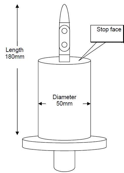 采用類似IEC 61032中B型試驗指,有一個直徑為50 mm 的圓柱形限位板,以替代原來的非圓柱形限位板。施加不大于5N的力,不能碰到危險運動部件。