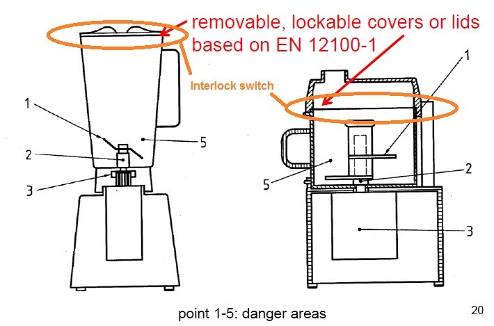2.原決議EK1 646-16要求移除攪拌機容器的蓋子,測試指不應(yīng)該觸及到危險的運動部件,否則需要在蓋子和容器間加裝安全互鎖開關(guān)(如圖2)。