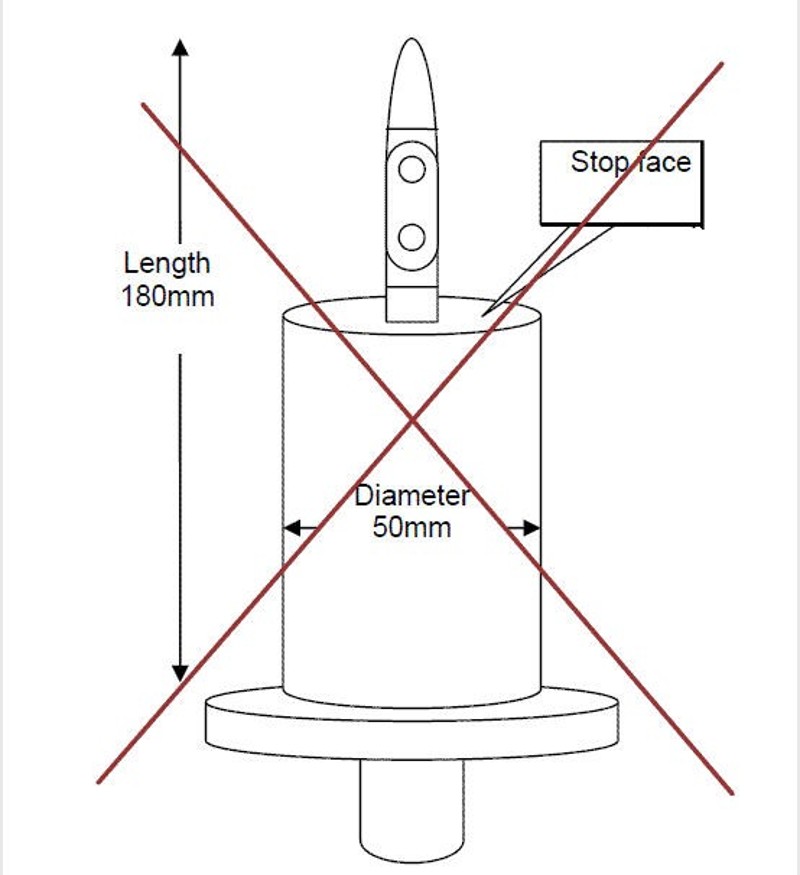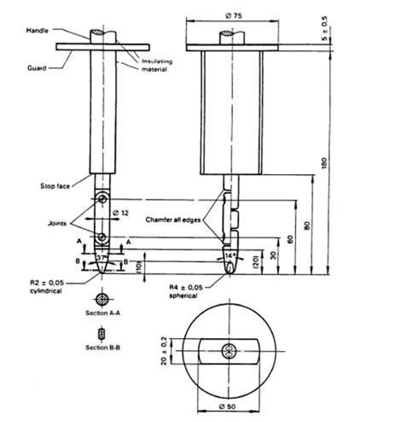 原先采用的帶有50mm圓形擋板的類似IEC 61032 中的 B型試驗指 ( 見右圖), 不再被用來進(jìn)行判斷是否觸及危險運(yùn)動部件。