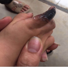 被電擊傷的手指 裸露的充電口