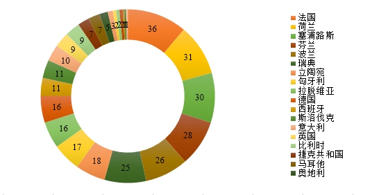 圖4 2019年一季度歐盟RAPEX通報(bào)中國消費(fèi)品的國家分布