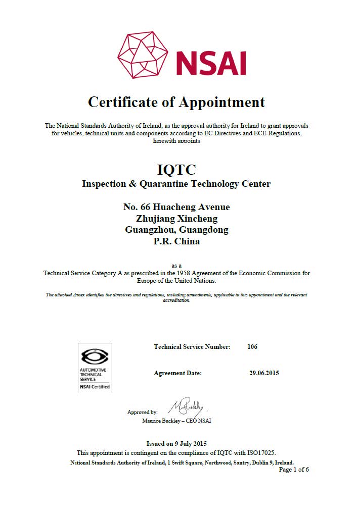 NSAI指定汽車兒童安全座椅E-mark認(rèn)證(E24)技術(shù)服務(wù)機構(gòu) | 106 | - | - | |