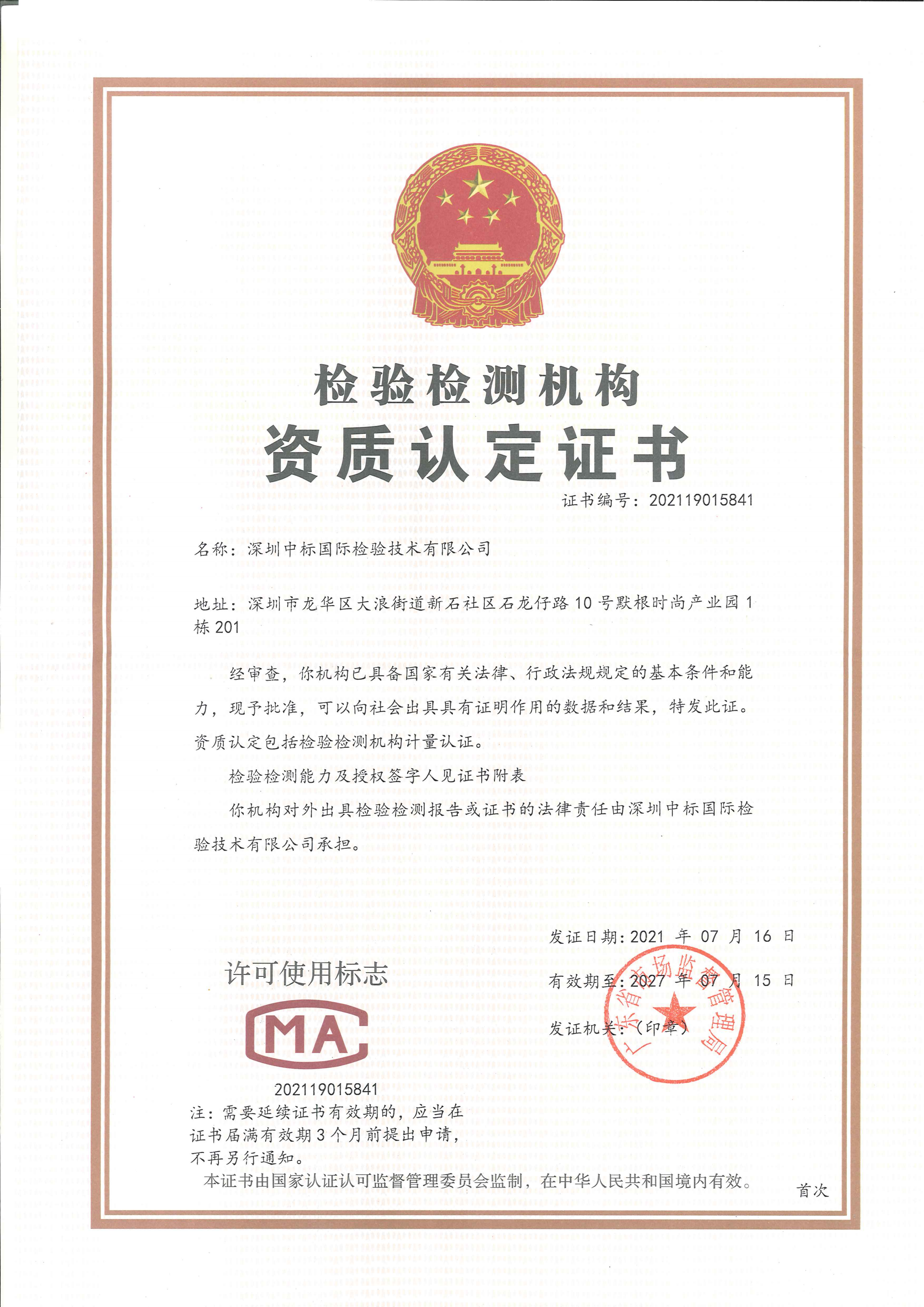 深圳中標(biāo)國際檢驗技術(shù)有限公司(英文“Shenzhen Central Standard International Center Co.,Ltd.”,簡稱CSIC),注冊資本1000萬,是一家主要從事電磁兼容(EMC)測試、電氣安全(Safety)測試、無線射頻和電信終端類產(chǎn)品(RF,Telecom)測試、性能檢測認證和代理的專業(yè)服務(wù)機構(gòu)深圳中標(biāo)國際檢驗技術(shù)有限公司坐落于深圳市龍華區(qū)大浪街道新石社區(qū)石龍仔路10號默根時尚產(chǎn)業(yè)園A棟1樓,總面積達2500平方米,其中實驗室面積1400平方米,分為電磁兼容、射頻、安全、性能(含能效)四大實驗區(qū)。公司骨干成員大多來自國際機構(gòu)及品牌企業(yè),擁有者豐富的企業(yè)強制認證流程管理以及全球化認證經(jīng)驗。CSIC秉承“科學(xué)、公正、準(zhǔn)確、高效”的宗旨,集各大國內(nèi)外檢測機構(gòu)的技術(shù)精英以及知名企業(yè)的品質(zhì)精英,為您提成專業(yè)、快捷、滿意的認證服務(wù),助“中國制造”走向國際。